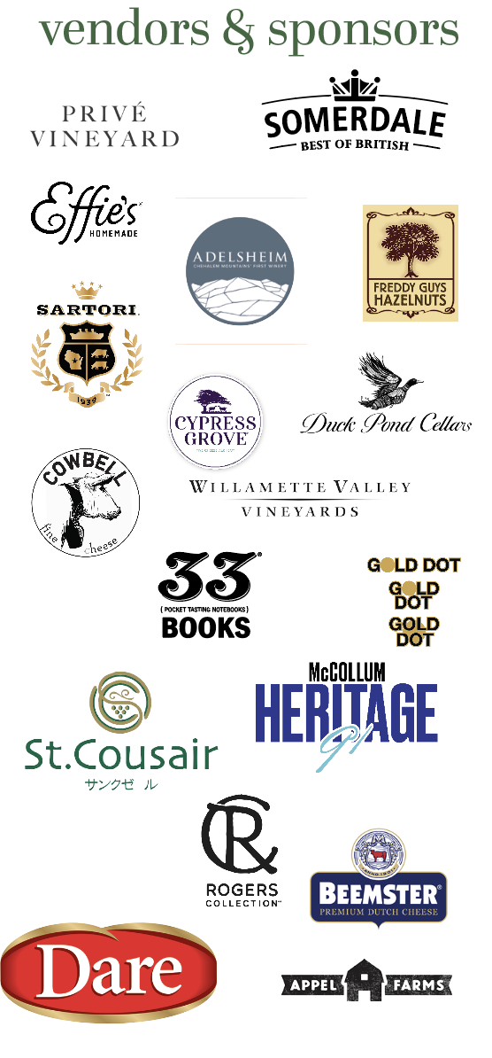 Wow! Congratulations on the event yesterday. We attended with neighbors from Dundee and thoroughly enjoyed the afternoon. The event reminded me of attend food shows around the country when I worked in domestic markewtring for ODA in the 80’s. It was exceptional to have this opportunity for consumers and not just the trade. You had a great balance of cheeses, charcuterie, confections, wine, beer and spirits. And, the personal tapas charcuterie bard was a great touch! Hope you bring this back next year!